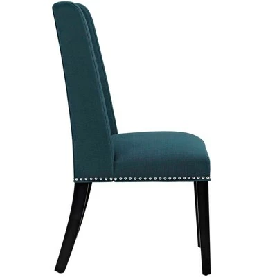Explore the vast riches of a treasured heritage with the Baron Dining Chair. Designed to resonate elegance, Barons features a charming back and polished nailhead trimmed seat with a dash of grace and noble appeal. Complete with dense foam padding, fine fabric upholstery, solid wood frame and legs with non-marking foot glides, Baron is a stylish dining chair perfect for the modern home.