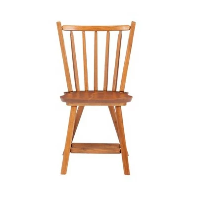 An old soul with a spring it its step, this side chair offers a youthful take on traditional cabin seating. The slanted hindlegs create a dramatic sense of movement in the silhouette, and are made of solid beechwood for ensured strength and stability. Rustic cuts in the wood are smoothed over by a medium wood tone stain and a glossy lacquer finish that provides long lasting protection and shine. The set of two arrives fully assembled and supports up to 300 lbs each seat.