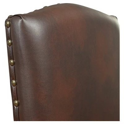 Style your space with a touch of modern elegance with the Cobble Hill Nailhead Accent Chair. This accent chair is the absolute perfect way to compliment any space in your home. It’s easy to match, versatile brown bonded leather upholstery and natural wood finish legs make it compatible with a variety of color schemes and styles. This chair makes for comfortable seating with it’s cushioned seat and padded back. Perfect for any nook, living space, entry way or dining area.