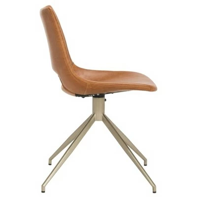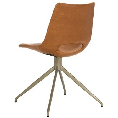This contemporary swivel chair was inspired by a top fashion editor’s Milan apartment. Upholstered in different color options, it’s gently padded for extra comfort. Its sleek brass legs and chic cut-out geometric design instantly updates any dining room or office. The swiveling function allows for easy mobility, whether it is used as a dining chair or an addition to your office. The Danube dining chair can hold up to 275 lbs. This set of two chairs are ideal for Contemporary, Mid-Century or Modern style interiors.