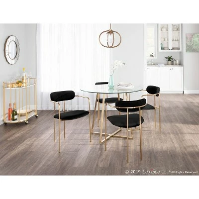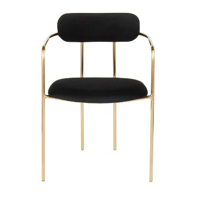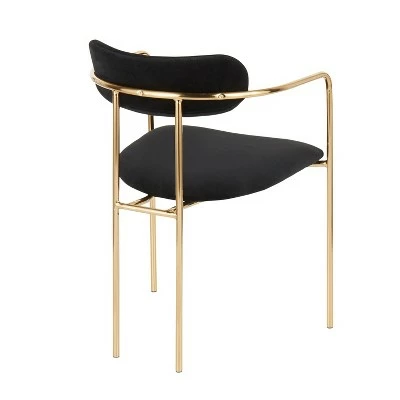 Dress up your modern dining area with the Demi Chair by LumiSource. Designed with style in mind, this glam chair features an open back design, gold metal frame, and a cushioned seat and armrests that let you kick back in style. Available in a variety of colors, the elegant Demi Chair is sure to give your space the modern look you desire.