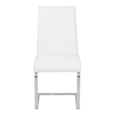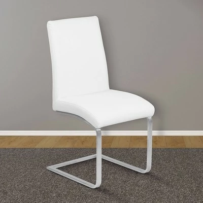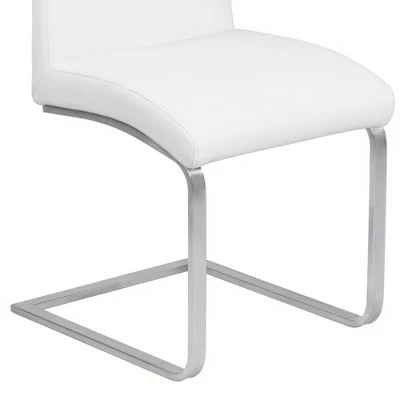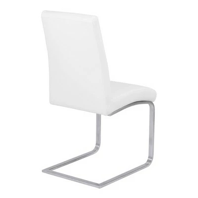 The Deneki contemporary dining chair is designed for elegance, comfort, and durability. Its unique shape makes the Deneki a standout item that is sure to add extra flare to the modern dining room or kitchen. This luxurious chair includes a plush, cushioned faux leather seat and back as well as a robust brushed stainless steel frame. The Deneki is sold in a set of two and comes in three elegant color variations; gray, black, and white.