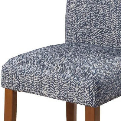 This Parson chair set features a perfect traditional design which will surely style the dining room and will also drive the inspirational look for others. Made up of wood and draped in blue textured fabric with brown finished legs, adds a distinct contrast. This chair set has padded splayed back support and cushioned seat with subtly straight front feet and slanted back feet. This set will offer a comfortable seating for the dining room or use as accent chair for home interiors. Also, the legs have floor protectors, providing protection against floor damage or scuff marks.