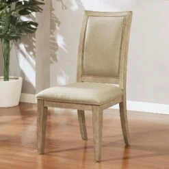 Make a magnificent impression with this set of 2 side chairs, finished in a beautiful natural wood with coordinating fabric seating. Feel exceptionally comfortable during your dining experience at home, supported by padded seats and angled back legs. This set of 2 dining chairs transforms any eating area with its sophisticated style, perfectly suited for an array of decor.