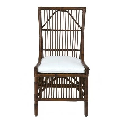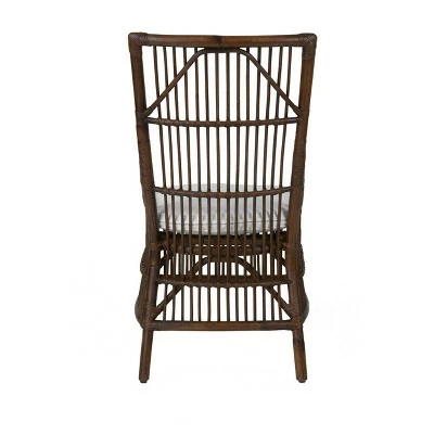 An updated take on a traditional silhouette, the narrow frame is perfect for a covered patio or as an accent piece in a living room. Crafted from natural rattan, this piece features a high back and open sides for an airy feel. Hand-wrapped rattan peel details make this chair unique and sturdy. A neutral brown finish outfits this design for a hint of warmth, while a removable seat cushion and pillow provides padding and completes the look. No assembly is required.