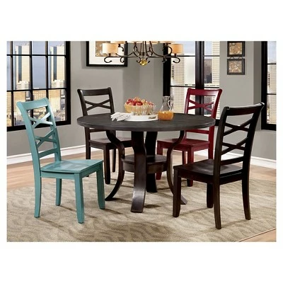 The HOMES: Inside + Out Emery Transitional Cross Back Dining Chair in Red and Blue’s simple yet bold design is sure to gather compliments from family and friends. with a cut-out cross panel back design, this set is complete with contoured wood panel seats. Clean and elegant, the chair delivers a casual touch to your dining space or eat-in kitchen. The HOMES: Inside + Out Emery Transitional Cross Back Dining Chair in Red and Blue comes as a stylish and inviting two-piece set.