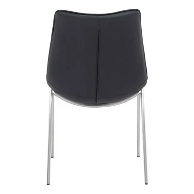 This armless contoured chair with its simple silhouette can dress up your dining space or keep things casual. Beautifully stitched design on black faux leather keeps an eye on the details. Comfortable enough to use as a desk chair. Brushed Stainless Steel legs are complete with protective plastic feet to keep your floors scratch-free.