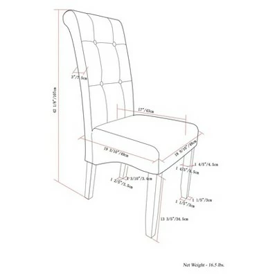Essex Contemporary Deluxe Tufted Parson Chair (Set of 2) . KD Construction. Price for two (2) pieces per carton. Chairs constructed using solid and engineered wood, superior webbing seat suspension and high density foam for more comfortable seating. Classic Contemporary Styling. Efforts are made to reproduce accurate colors, variations in color may occur due to computer monitor and photography. The product is warranted to be free from defects in material and workmanship for a period of (1) year from the date of purchase to the original owner.