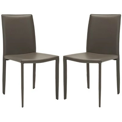 The minimalist aesthetic of the Geneva dining chair (sold in a set of two) suits decorating tastes both transitional and contemporary. Upholstered with easy care bonded leather, these sturdy chairs exude Euro-chic style. Crafted from 100% iron and Plywood, these sturdy set of two chairs are able to support up to two hundred and seventy five pounds. These simplistic but decorative structure calls for simplicity and elegance. The Geneva dining chairs are the ideal choice for Contemporary, Modern, or Transitional style interiors.