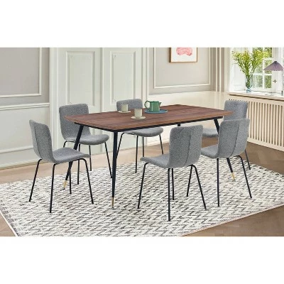The Armen Living Gillian Modern Charcoal Set of 2 Metal Dining Room Chairs is all you have ever looked for in a chair combined into one perfect seating option. The smooth upholstery shows off the quality of the product, as does the strong and durable chair frame. The rounded chair seat is flawlessly shaped and will keep you comfortable all day long. The ergonomic chair back is crafted to keep your back and posture in the perfect position. The legs of the chairs are tipped with rubber caps to prevent sliding on or scratching floors. The Gillian chairs are available in your choice of Gray faux leather or Gray fabric upholstery options.