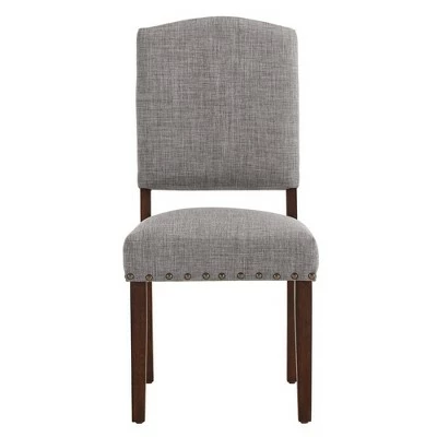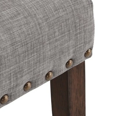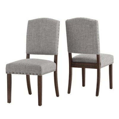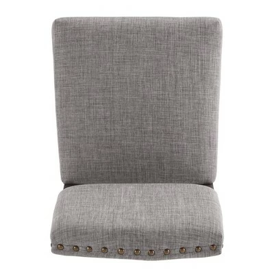 Iverson Nailhead Trim Brown Finish Linen Side Chair (Set of 2) from iNSPIRE Q is here to help you make the ultimate dining experience. Studded with artisan style, this elegant set features linen upholstery and antique nail head trimming that is sure to wow your guests. A strong, rubber wood construction is used for reliable support through everyday use and wears a visible, wood grain finish on the legs for a rustic touch. Your guests will dine comfortably in foam-filled seat and back cushions and in admiration of the sophisticated look of the set.