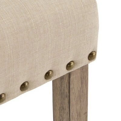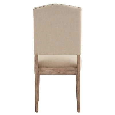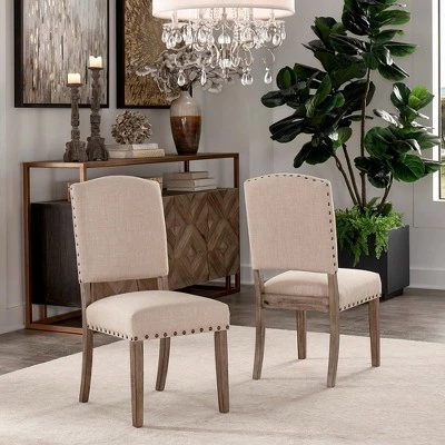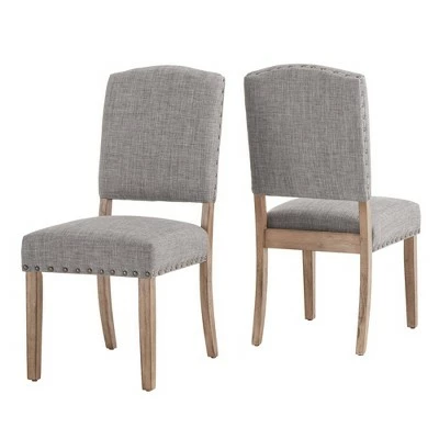 The Iverson Nailhead Trim Gray Oak Finish Linen Side Chairs (Set of 2) from iNSPIRE Q make a luxurious companion to any formal setting. Style and comfort go hand in hand with this classic set with plush, linen-upholstered seat and backrests, complete with a decorative nailhead trim. Founded on sturdy rubber wood, the legs feature an antique, gray oak wood finish that gives the right touch of rustic charm. With several color options to choose from, the neutral hues allow you to personalize your dining space to your liking.
