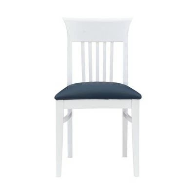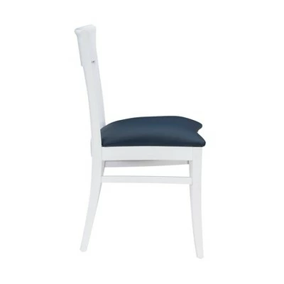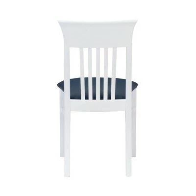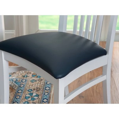 - Classic slatted back design and an easy to clean navy faux leather upholstered seat
