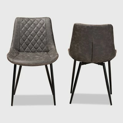 Add timeless style to your dining space with the Loire dining chair. Upholstered in a distressed gray and brown faux leather, the Loire features a wide, curved seat for the utmost comfort. Contrast stitching and whip stitching spruce up the rugged faux leather. Black splayed metal legs provide solid support and give the Loire a cool industrial vibe. The Loire bar stool is made in China and requires assembly. Dimensions: 31.89″ High x 20.08″ Wide x 23.23″ Deep; Seating Dimensions: 20.08″ Wide x 16.54″ Deep x 17.72″ High (from Floor); Back: 14.17″ High; Legs: 17.72″ High;