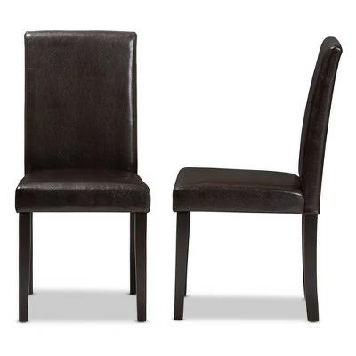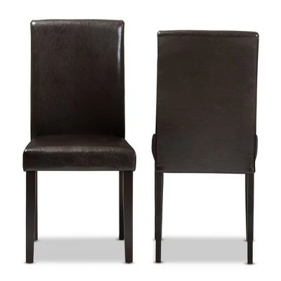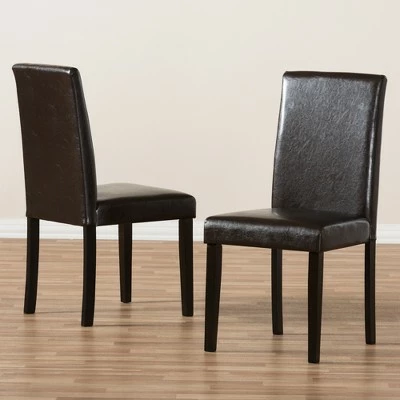 Enjoy comfort and support in your dining area with the Mia dining chair set. Constructed of solid rubberwood frame with a finish for lasting strength and durability, the Mia dining chair set is upholstered in quality faux leather for easy maintenance and every day’s use. Featuring solid high-backed seat and shaker legs for simple elegance, the dining chairs are padded for ultimate comfort. Style your everyday seating with the quality feel of the Mia. Made in Malaysia, this set of two casual dining chair set requires assembly. Dimensions: 37.2″ High x 17.91″ Wide x 22.05″ Deep; Seating Dimensions: 18.5″ High (from Floor) x 17.72″ Wide x 16.93″ Deep; Back: 18.7″ High; Legs: 14.76″ High