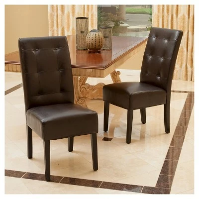 These Christopher Knight Home Mira Dining Chairs (Set of 2) suit many needs while still not losing an ounce of style. Fully covered in soft bonded leather with tufted detailing and dark stained legs these dining chairs will compliment almost any decor. Not only would they look nice at your dining room table but they can also be placed in your living room to provide extra seating. You will want to keep one of these Christopher Knight Home Mira Dining Chairs in every room.