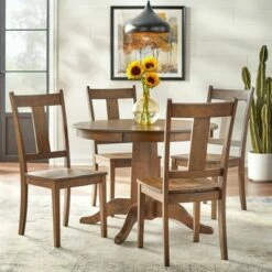 Add sophistication to your dining space with the Newington (set of 2) Dining Chairs. Inspired by Mid-Century design with sleek lines, tapered leg style and a comfortable cushioned seat, these dining chairs are the perfect addition to any dining room. Constructed of solid rubberwood, they are finished in a warm Walnut tone with an upholstered seat cushion in a soft linen-like mocha colored fabric.