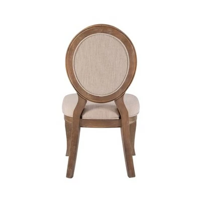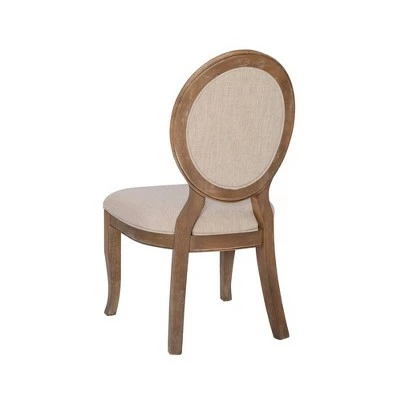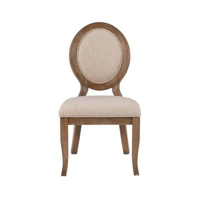 The Olivia Side Chair is a rustic, yet elegant dining chair with an oval back. Upholstered in a natural linen-look fabric with piping along the edges, this graceful chair is sure to fit any space in your home. Pairs beautifully with the Olivia Dining Table. You will love this piece!