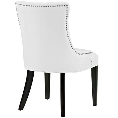 Transport your decor to a simpler time with the Regent Dining Side Chair. Fashioned with a chic and elegant look, Regent features finely tufted buttons, studded nailhead trim, and a regal seat generously padded in foam and upholstered in polyester fabric. Regent comes with non-marking foot caps, tapered wood legs, and works well in both modern and traditional dining rooms.