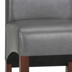 - Classic Contemporary Styling includes horizontal stitching on seat back and dark brown wood legs