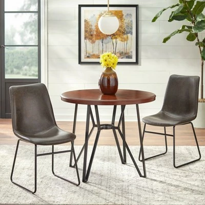 Create an attractive dining room or kitchen space with the Shane Dining Chair (Set of 2) from Buylateral. Fully upholstered in Brown faux leather and constructed of bentwood which is skillfully curved to contour the body. Accented with Black metal legs, completes the look of these chairs, providing a universal appeal that coordinates well with many styles of dining tables.