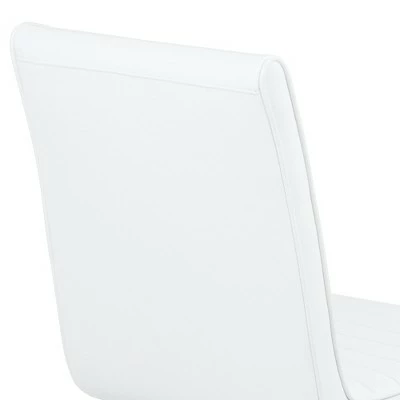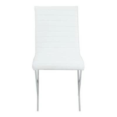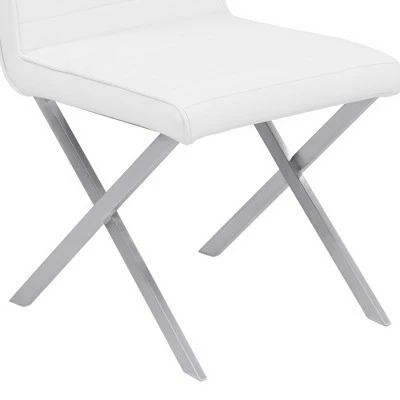 Refresh your dining room aesthetic when you add this Set of Two Tempe Contemporary Dining Chairs from Arven Living. Featuring a cross-leg stainless steel frame with a brushed finish, these upholstered dining chairs easily combine stability and style to give you support whether you place them in the dining room or the living room. The faux-leather upholstery features a padded construction and stitch detailing, lending comfort and style to your dining room furniture that you’ll appreciate whether you’re hosting a dinner party or relaxing around the house.