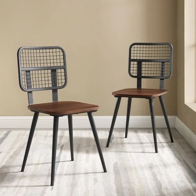 Touch up industrial style with retro vibes by using the Saracina Home Industrial Metal Mesh Back Dining Chair, Set of Two. Two chairs come in this sophisticated dining set. Powder-coated steel make up their groovy, vintage, mesh-metal chair backrests. A high-grade MDF wood seat, complete with a photo-ready veneer finish makes for a dreamy, two-toned look. Tapered legs add a bit of mid-century delight while the metal frame keeps the industrial style fresh. So, flirt with a modern blend of sleek metal and classy wood for a brand-new look! For even more styling options, check-out Saracina Home’s other dining chair collections and see how many looks you can create.