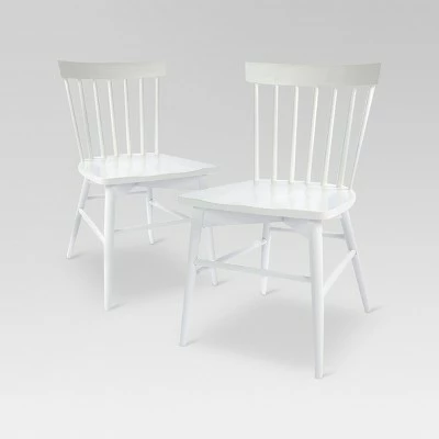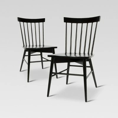 Dine in style with the Set of 2 Windsor Dining Chairs from Threshold™. These classic wooden chairs are great for everyday meals and casual entertaining. They have a comfortable pitch and sturdy wood construction with a high fan back and a shallow saddle seat to keep the whole family comfy — a smart and stylish addition to your home furniture collection.