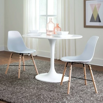 The 161 Collection blends mid century modern and industrial modern styles with current design trends to create timeless pieces that will seamlessly compliment any decor. The OFM 161 Collection Mid Century Modern 18″ Plastic Molded Dining Chairs, in White, provide an interesting accent to any table and is sold in sets of 4. The chairs are made of an easy to clean flexible and durable molded plastic shell with a curved seat back that provides ergonomic back support. The chair base features solid natural beechwood legs with a wire support accent. The chair legs, with felt floor protectors, come in two assembled sets, per chair, to make installation quick and easy. This versatile chair can be used in multiple applications including kitchens, bedrooms, living rooms, waiting rooms, lobbies, and reception areas. These standard 18″ dining chairs measure 21.25″ D x 18.25″ W x 32.25″ H. These modern dining chairs accommodate users up to 250 lb and are backed by our 5 Year Limited Warranty.