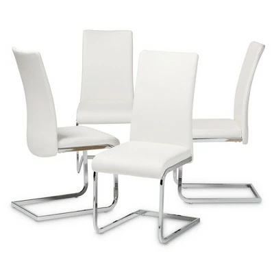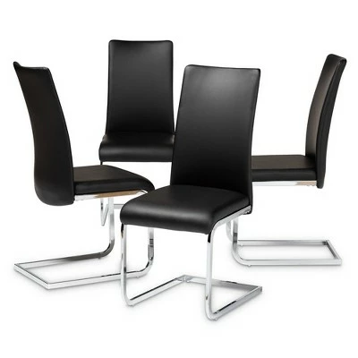 The Cyprien dining chair is both retro and timeless. The mid-century modern-inspired design is evident in the clean lines and gentle curves of the chair. The Cyprien is foam-padded and upholstered in faux-leather. The chair features chrome-finished, bent legs for a unique look. The gently curved chair back of the Cyprien encourages hours of comfortable seating. Give your dining room a retro vibe with this chair, or add it to your reception area or other shared spaces for extra flair. Made in China, the Cyprien requires assembly. Dimensions: 37.4″ High x 16.93″ Wide x 23.23″ Deep; Seating Dimensions: 17.91″ High (from Floor) x 23.23″ Wide x 16.93″ Deep; Back: 25″ High; Legs: 16.93″ High