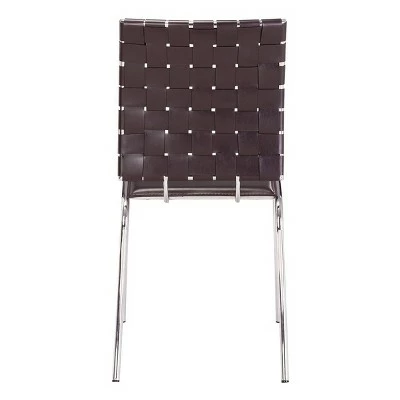 Refresh your dining area with the sleek look of the Modern Dining Chair Set from Zuo. Crafted from durable steel and then topped off in a shiny chrome finish, these faux-leather dining chairs come complete with a woven back and comfortable seat.
