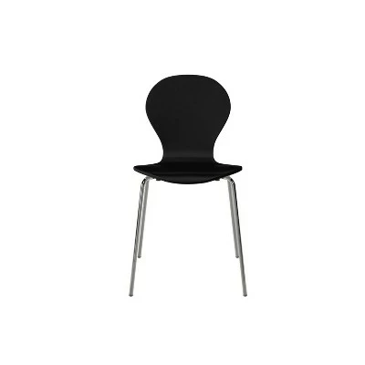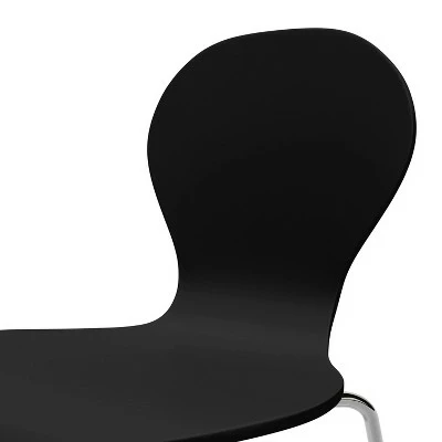 This set of 4 armless wood dining chairs exemplifies mid century modern design that will update the look of your home. These minimalistic chairs have shapely silhouettes with great scale that makes them the perfect addition for the dining room, kitchen, desk or anywhere else you might need an extra seat. These convenient chairs can also be stacked together for storage when not in use.