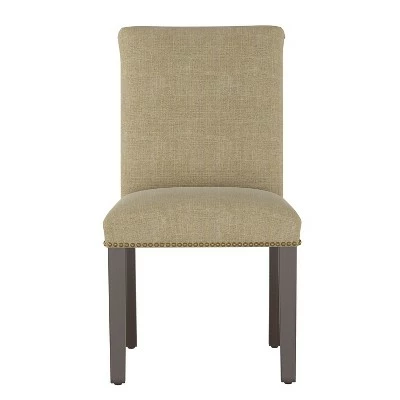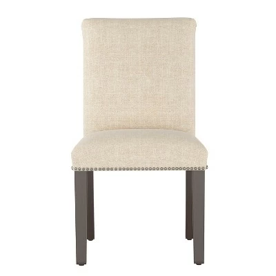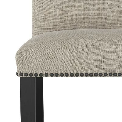 From the dinner table to the countertop, the Shelly Nail Button Dining from Cloth & Co. puts elegance on the menu. Handcrafted in your choice of chic upholstery fabrics, its clean, cushioned silhouette and classic nailhead trim are a timeless treat gathered around any table in your home.