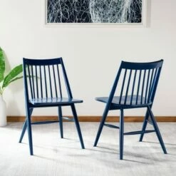 Set of 2 Wooden Dining Chairs with Paisley Print Fabric Upholstery Red/Blue – Benzara
