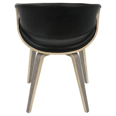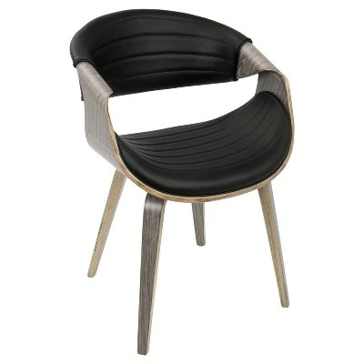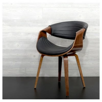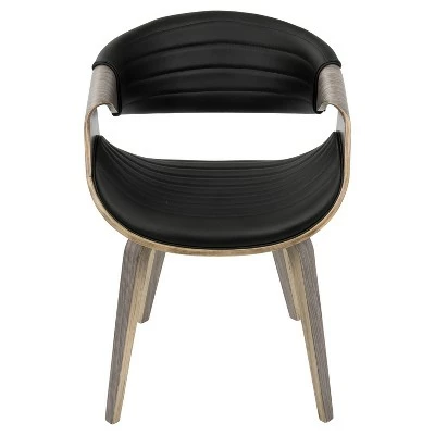 A curvaceous dose of Mid-Century style, the unique design and silhouette of the Symphony Dining Chair will look great at any table! Also great for use as a stylish accent chair. Upholstered in a sleek faux leather accented with vertical tufting and bent wood legs, the Symphony comes in a variety of colors to fit in any room.