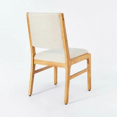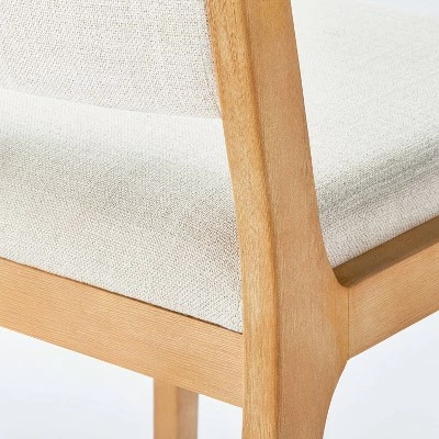 Enhance your dining experience with this Wood Dining Chair from Threshold™ designed with Studio McGee. The wooden frame is built from natural pine and birch, and its simple design will fit with the aesthetic of any home. The soft upholstery on the seat and back ensures maximum comfort for dining with friends, family and guests. This gorgeous modern style chair comes in white and a pale gray color for seamless style with any decor.