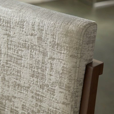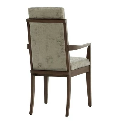 - Wood dining arm chair with beige velvet fabric and solid wood frame