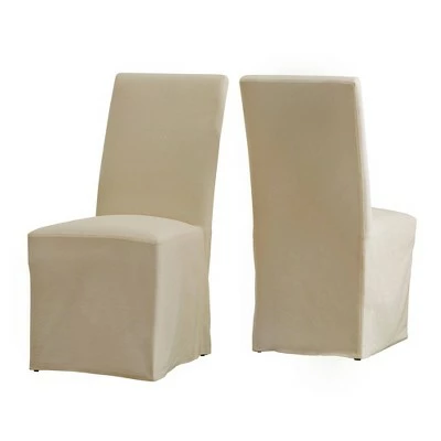 Elevate the look of your rooms with the Walton Park Slipcovered Parsons Dining Chairs from Inspire Q. With sleek and simple design, this set of two armless dining chairs are sure to look at home in your living space as well as at your dining table. Keep the set in your dining room for big family meals or your next get-together, and move them to the living space when your party guests need a space to sit and chat once dinner’s over.
