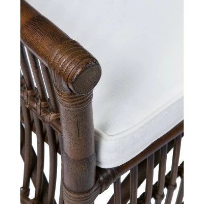 An updated take on a traditional silhouette, the narrow frame is perfect for a covered patio or as an accent piece in a living room. Crafted from natural rattan, this piece features a high back, sloping arms, and open sides for an airy feel. Hand-wrapped rattan peel details make this chair unique and sturdy. A neutral brown finish outfits this design for a hint of warmth, while a removable seat cushion and pillow provides padding and completes the look. No assembly is required.
