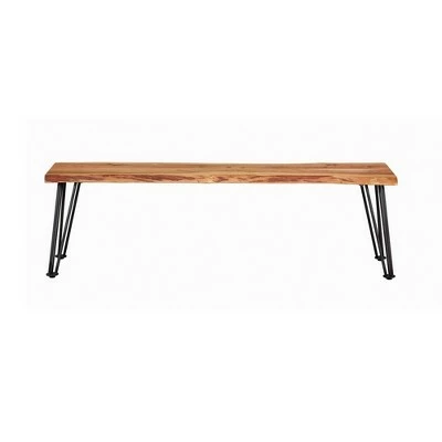 Accentuate the aesthetics of your dining space with the introduction of this sophisticated and stylish Dining Bench. Incorporated with a wide rectangular seat with live edge detailing, the black accented metal hairpin legs add a riveting flair to it.