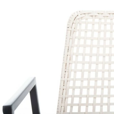 Sleek and sophisticated, this contemporary leather woven dining chair is a fresh interpretation of vintage Danish style. Designed with deluxe white leather, the clean lines of its black iron body update any dining room. It’s a new classic. Sold in sets of two. Care Instructions: Although leather is one of the most durable upholstery materials, proper care is vital to maintain its appearance and performance. Dust weekly using a soft, clean cloth slightly dampened with distilled water. Blot spills immediately with a soft, clean absorbent dry cloth.